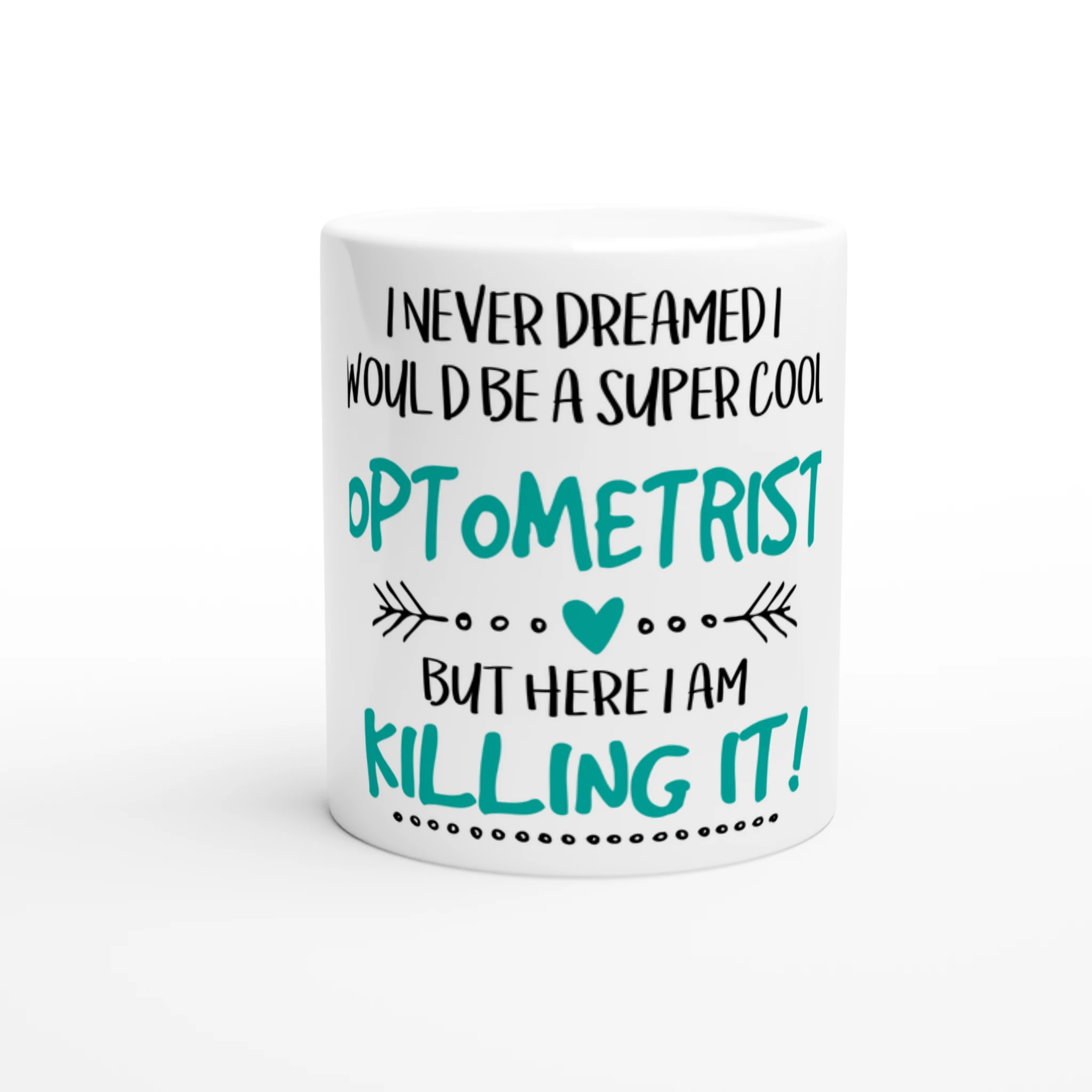 I Never Dreamed I Would Be a Super Cool Optometrist Ceramic Mug – Teal & Black Botanical Quote Coffee Cup