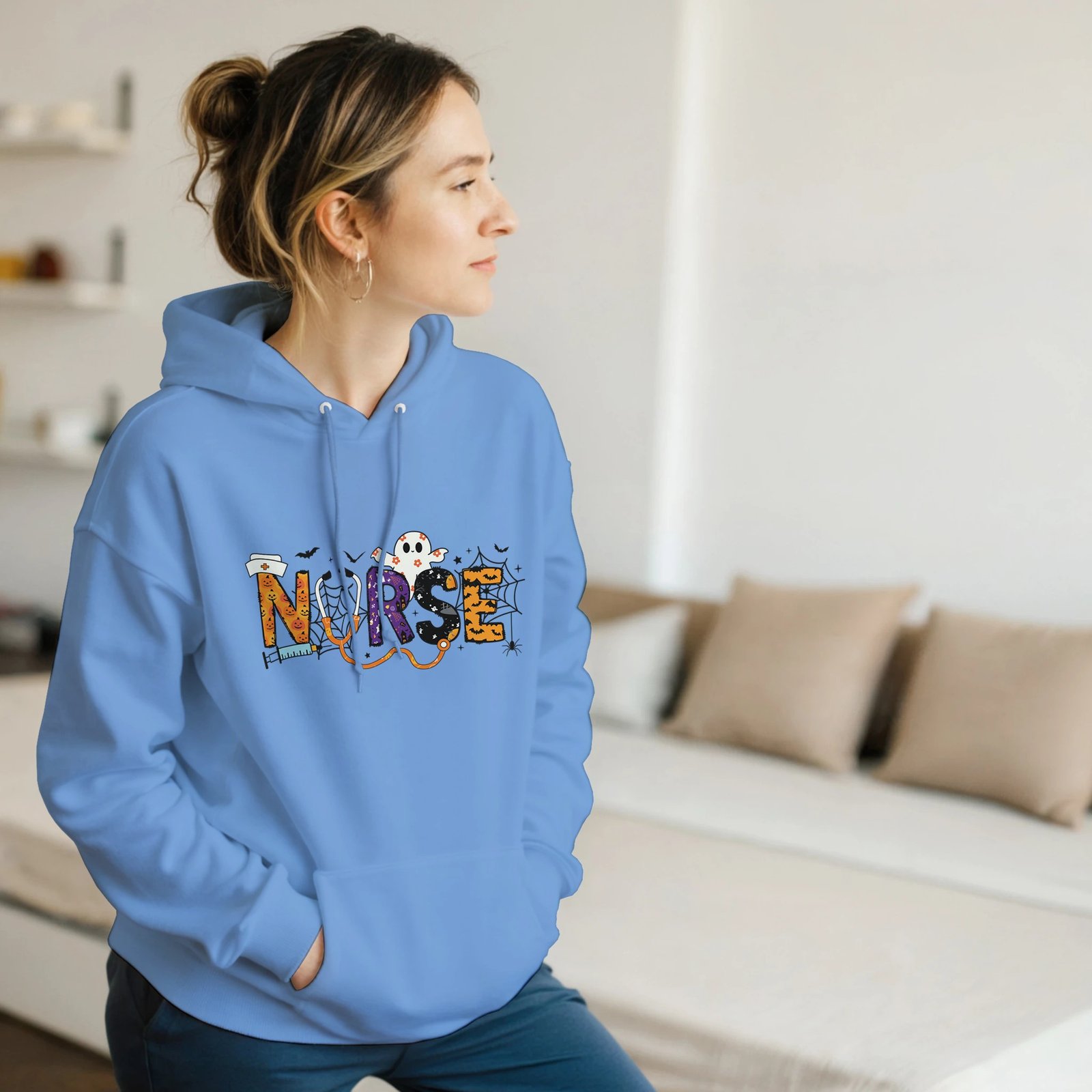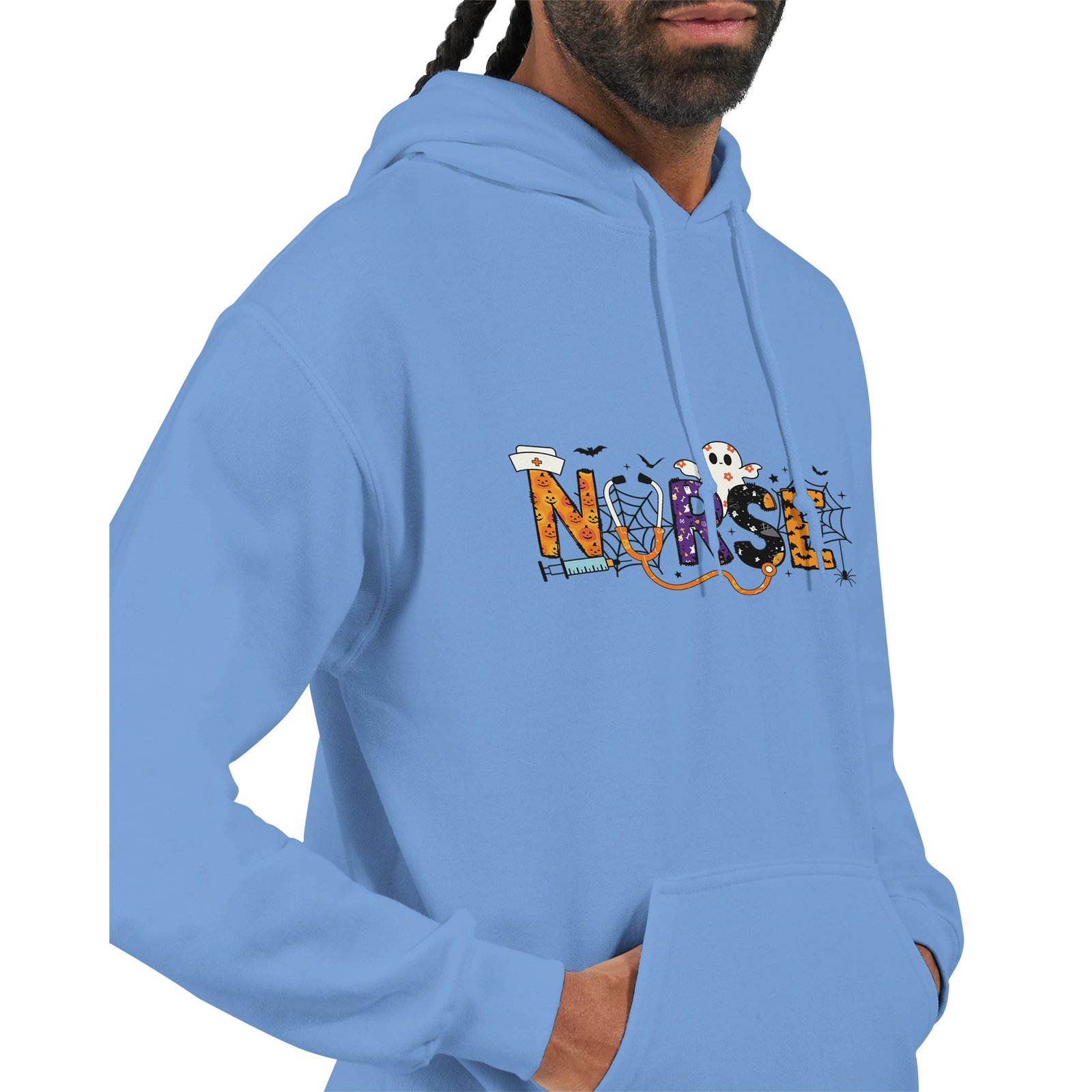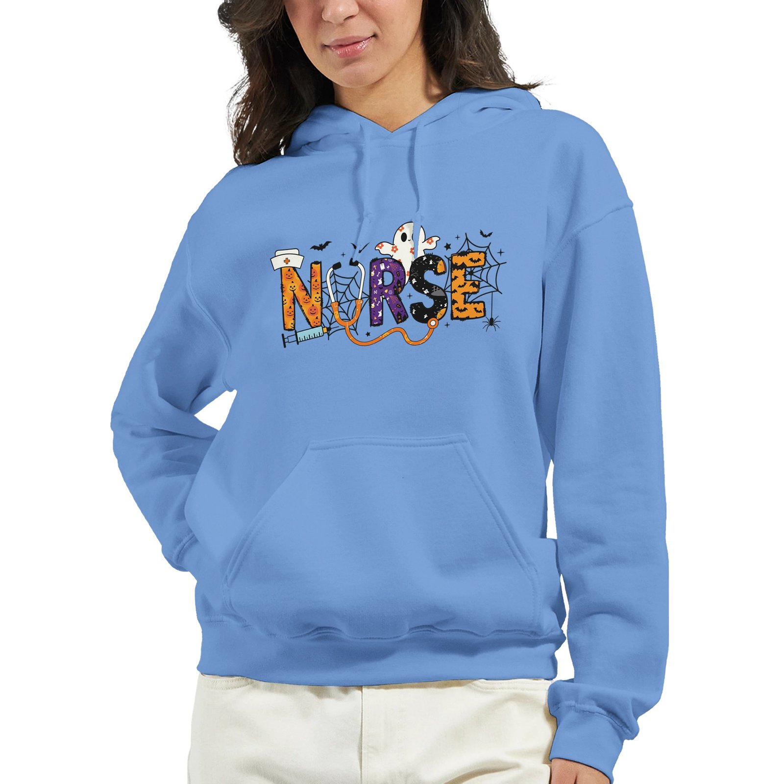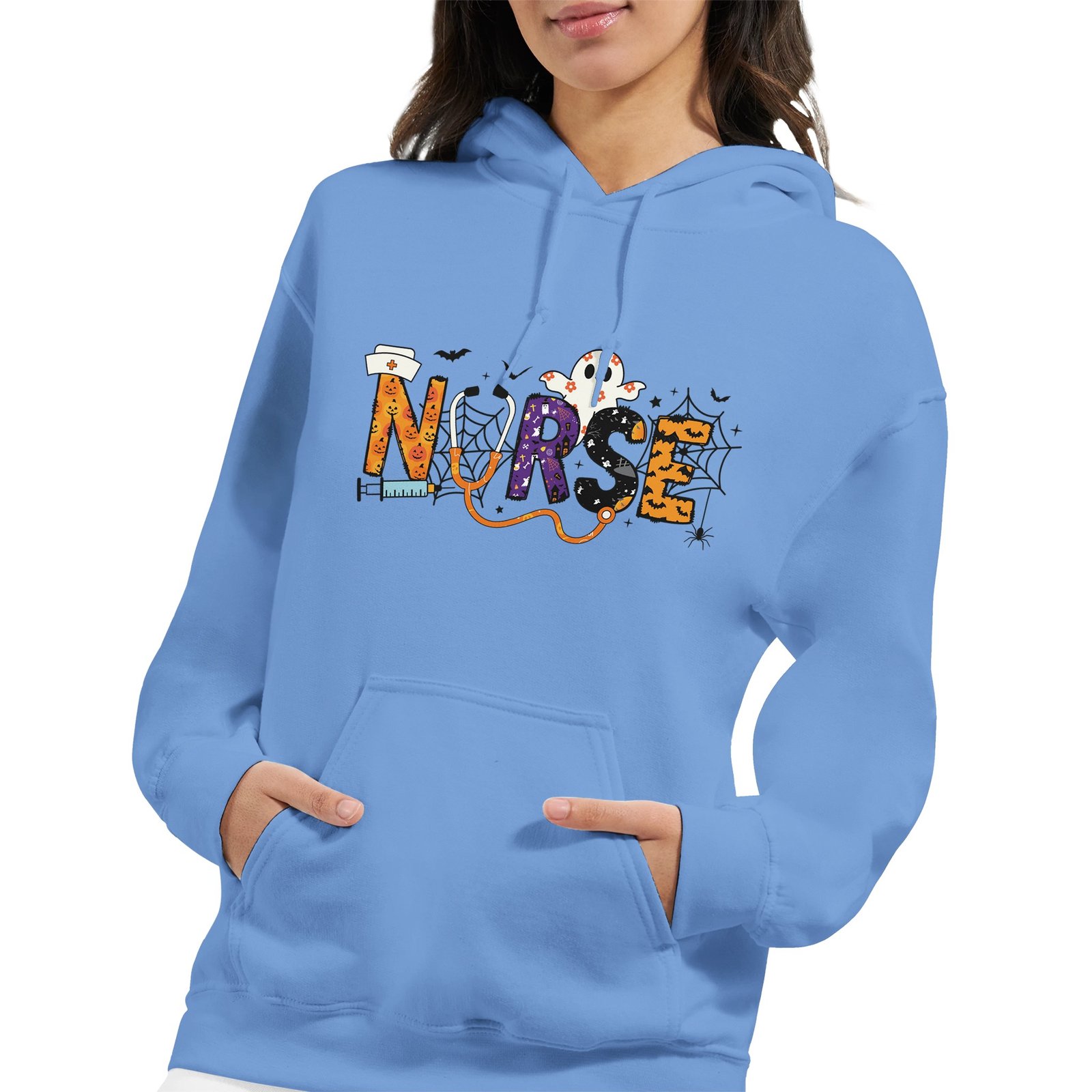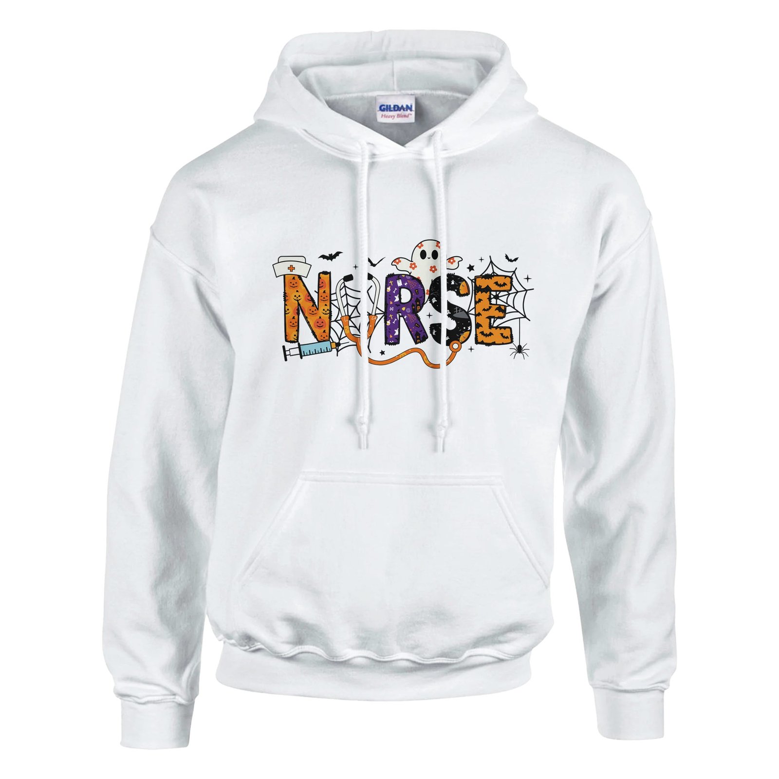 Celebrate Halloween in style with our exclusive Nurse Halloween Heavy Blend Hoodie. Crafted from a soft and comfortable 50% cotton and 50% polyester blend, this hoodie is perfect for festive gatherings or cozy nights in. The double-lined hood with a matching drawstring allows for a personalized fit, while the air jet yarn ensures a softer feel and minimizes pilling, making it last wear after wear. With a convenient front pouch pocket, you can keep your essentials close at hand. Rib knit cuffs and waistband with spandex provide added comfort and a snug fit. Whether as a gift for a fellow nurse or a treat for yourself, this hoodie combines practicality with festive flair. Don’t miss out—snag yours now and stand out this Halloween!